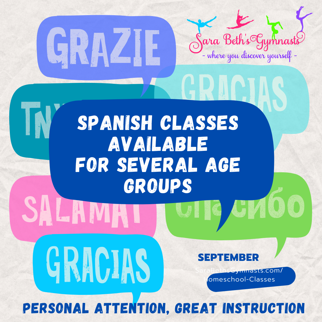 We offer Homeschool Educational Classes as we have Chelsea Homeschool Academy in our community! Spanish and sign language with the opportunity to add more classes all being offered at Sara Beth’s Gymnasts in Chelsea, Alabama.