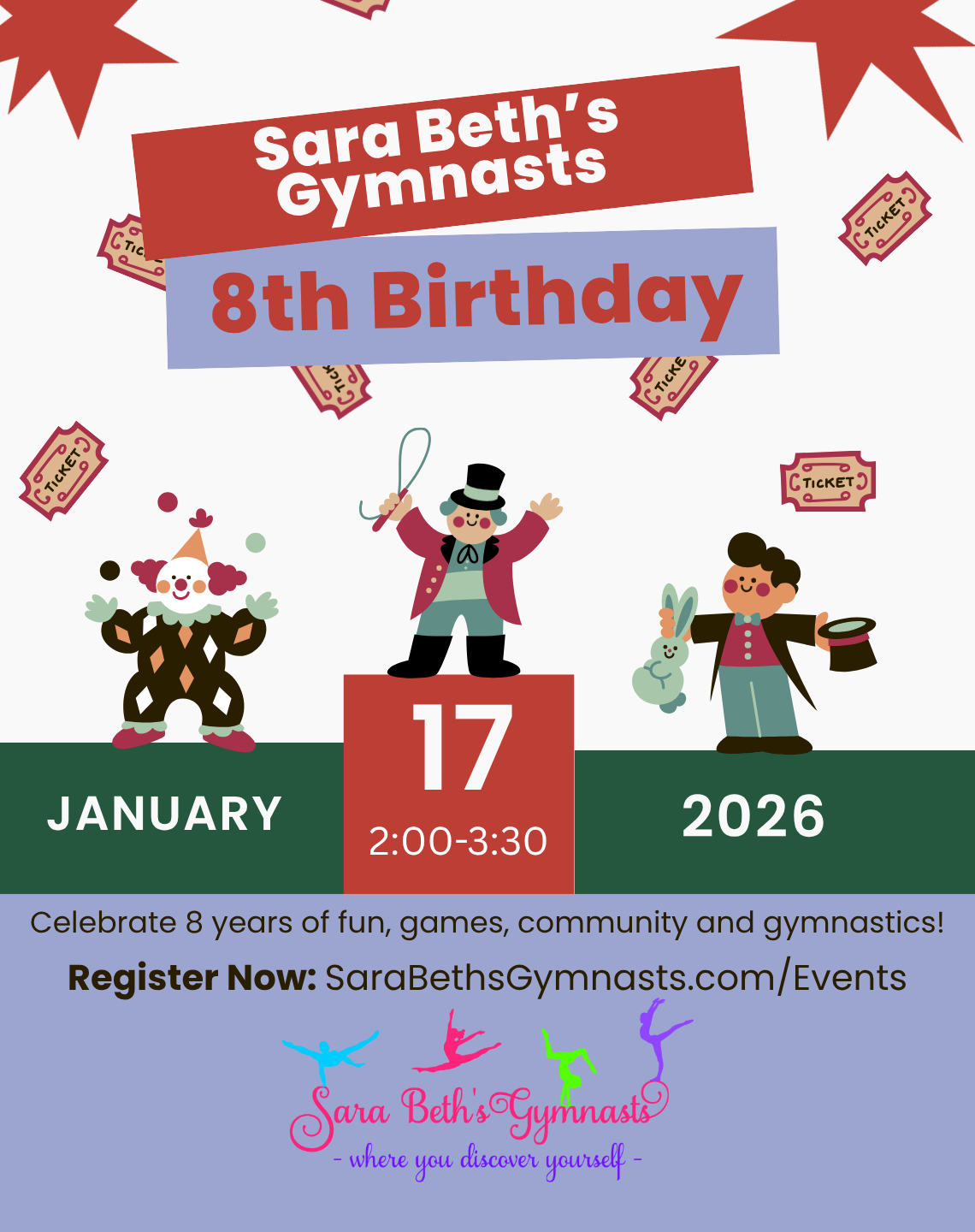 Welcome to Sara Beth’s Gymnasts where you discover yourself. We have a growing gymnastics community in Chelsea, Alabama, and welcome you to join us. Start your little one with a parent in our Parent and Tot Gymnastics classes and let them grow into a confident and coordinated gymnast. All ages girls and boys through adults of any age and skill level welcome. Start at any age. You’ll be glad you did.