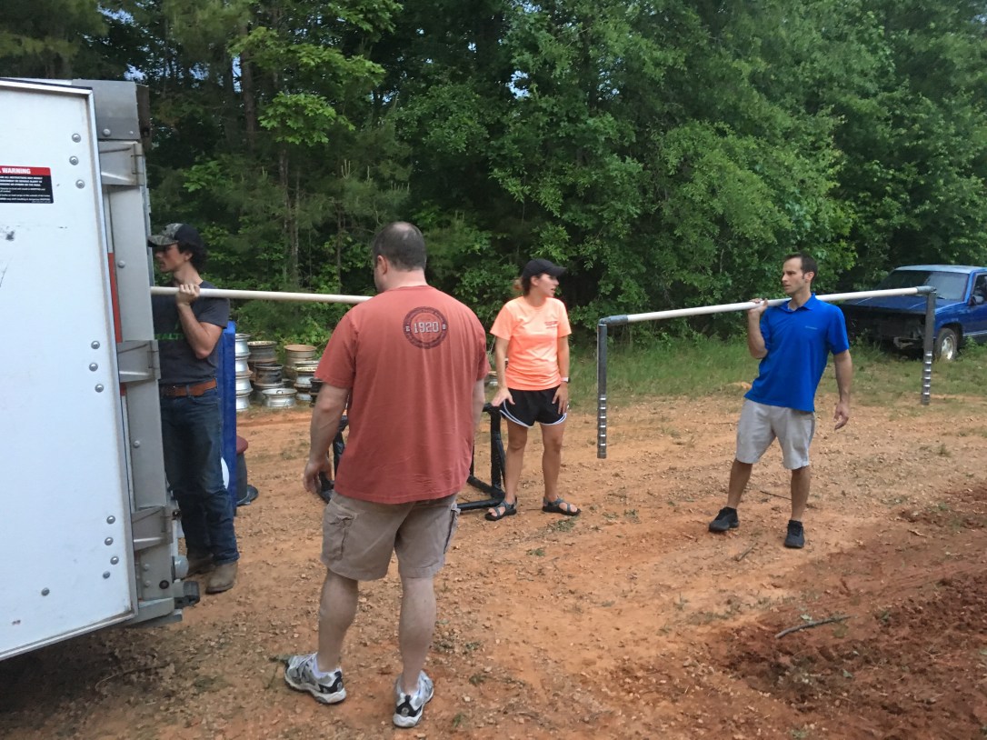 We then loaded up and headed to the gym to review most of the equipment on my wish list. One by one, we checked off items as they were loaded into the trailer. At the top of my list was a set of AAI uneven parallel bars. Yes, that’s right! I’m the proud owner of competition uneven bars finally. Hip hip hooray!