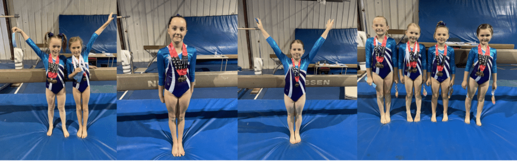 Whew! With that first meet in the books, they all now knew a little more about what to expect at a gymnastics meet. This helped them know where we could improve before the next meet, so they buckled down and worked hard each and every practice knowing they had the potential to score and place better at their next meet. We’re so excited!