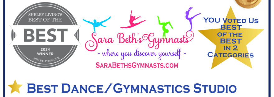 We have been bestowed the honor of Shelby Living’s BEST of the BEST 2024 in not one but two categories! I’m so honored to announce Sara Beth’s Gymnasts is Shelby Living’s BEST of the BEST in: ️ Best Dance/Gymnastics Studio and ️ Best Place for a Kid’s Birthday Party. WOW! You all truly are amazing!… Continue reading Shelby Living’s BEST of the BEST in 2 Categories