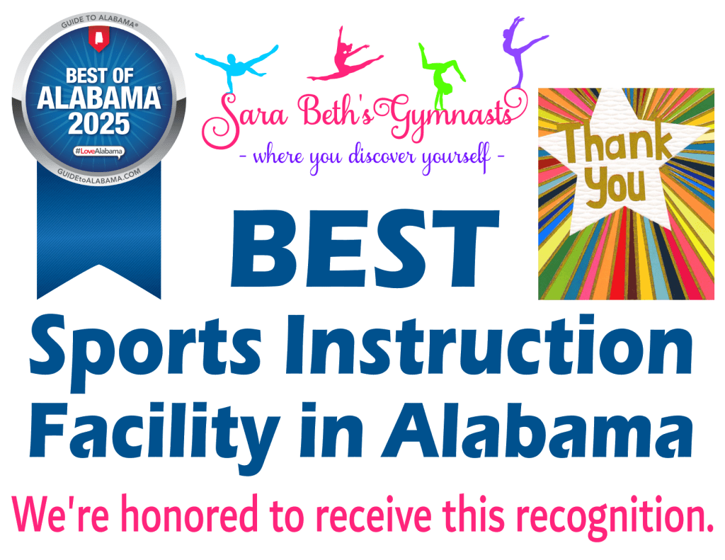 06/05/2025: We have been bestowed the award of Best Sports Instruction Facilities in Alabama! My heart is overflowing. I am so incredibly humbled for Sara Beth’s Gymnasts to earn this recognition.
